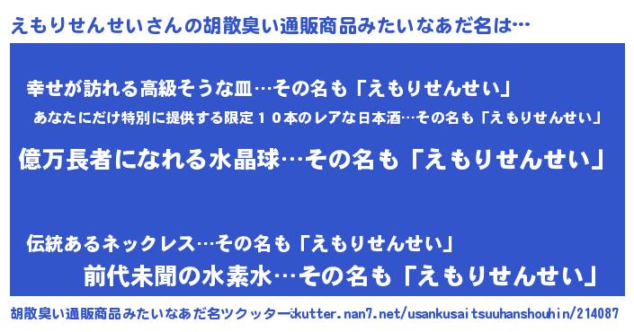 | ヘコむあだ名 | 『えももー』『なまこ酢』 |