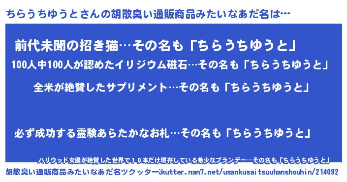 | 意味不明あだ名 | 『とにかく怪しいちらうちゆうと』 |