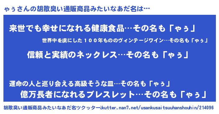 | 意味不明あだ名 | 『とにかく怪しいゃぅ』『永久保存ゃぅ』 |