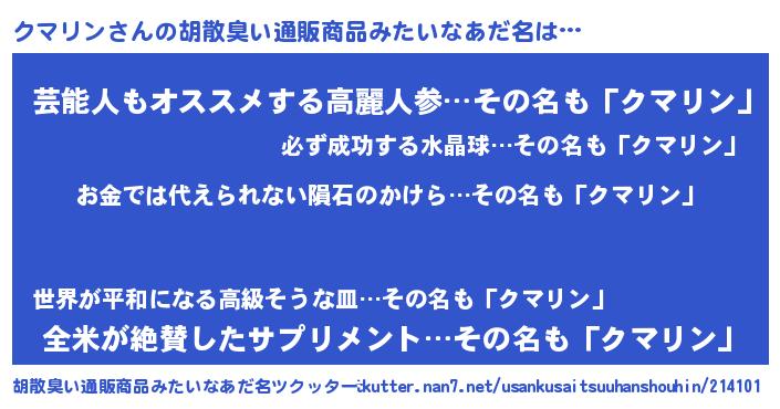 クマリンさんの胡散臭い通販商品みたいなあだ名をツクッター!