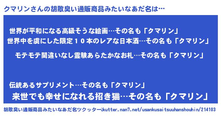 | 欧米人風あだ名 | 『マイケルクマリン』 |