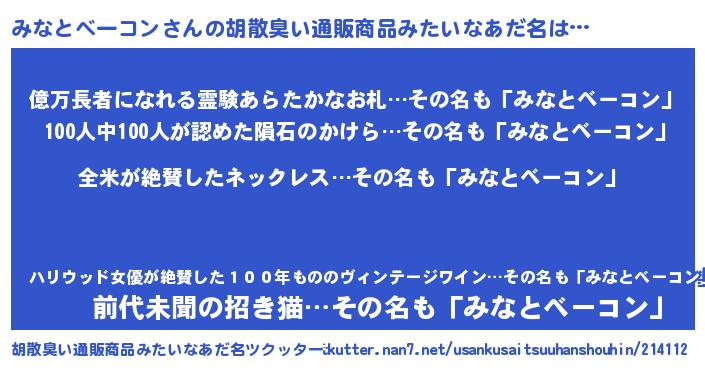 | 意味不明あだ名 | 『とにかく怪しいみなとベーコン』 |