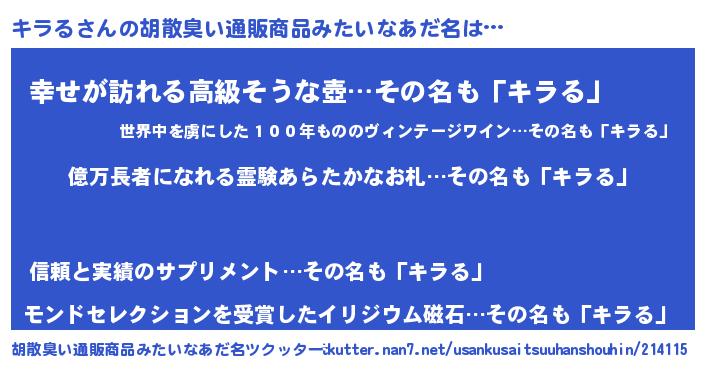 | 意味不明あだ名 | 『ペロリンキラる』『キラるフォーエバー』 |