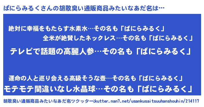 | 意味不明あだ名 | 『自称ばにらみるく』 |