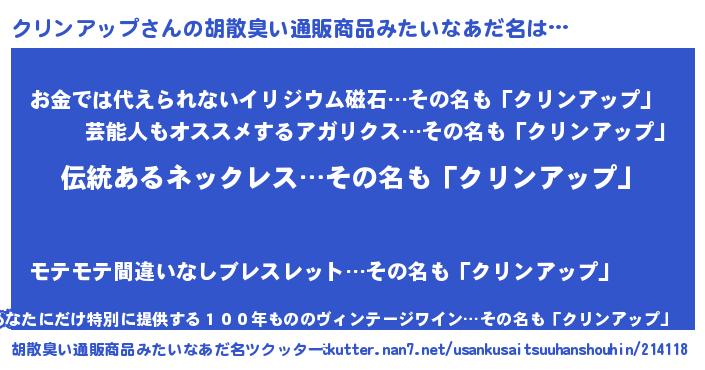 | 欧米人風あだ名 | 『ウサインクリンアップ』 |
