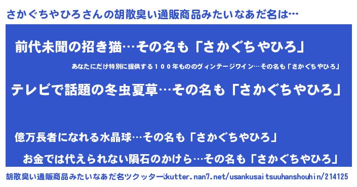 | 肩書あだ名 | 『さかぐちやひろ大将』 |