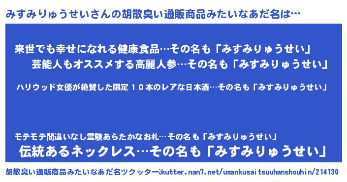 | 2chまとめサイト | サイト名『ニューみすみりゅうせい速』 |