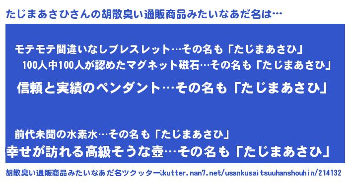 | 男性向けラノベタイトル風あだ名 | 『緋弾のタジマアサヒ』 |