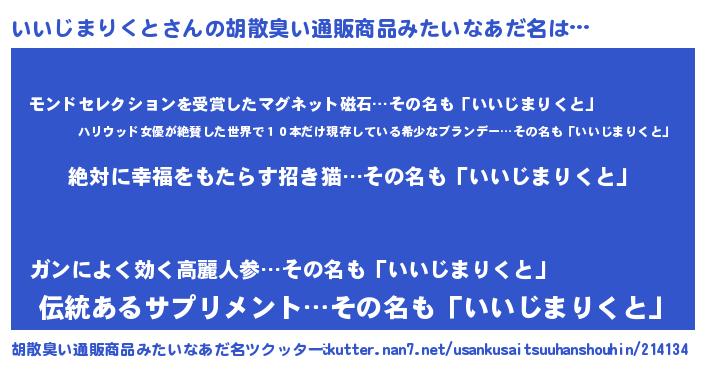 | ヘコむあだ名 | 『いいじまりくと(小並感)』『いいお』 |