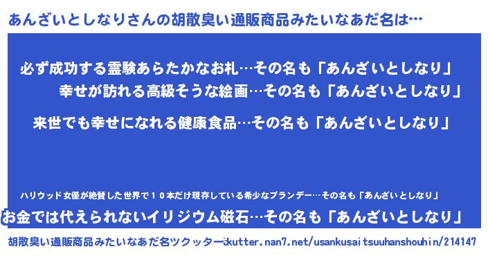 | 意味不明あだ名 | 『永久保存あんざいとしなり』 |