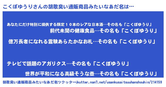 | 伝説のあだ名 | 『封印されしスナイパーこくぼゆうり』 |