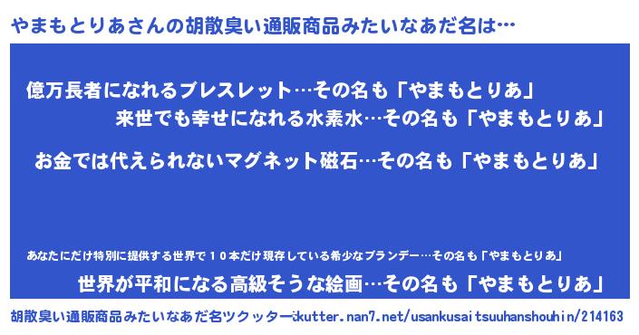 | ヒーロー風カッコイイあだ名 | 『慈愛の使者やまもとりあ』 |