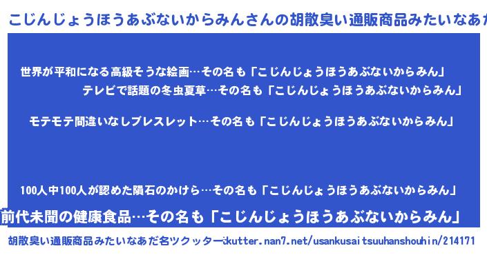 | ヒーロー風カッコイイあだ名 | 『スーパーコジンジョウホウアブナイカラミン』 |