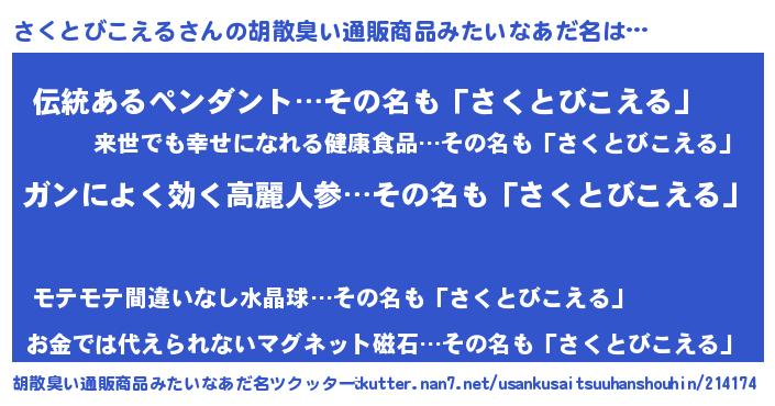 | 意味不明あだ名 | 『自称さくとびこえる』 |