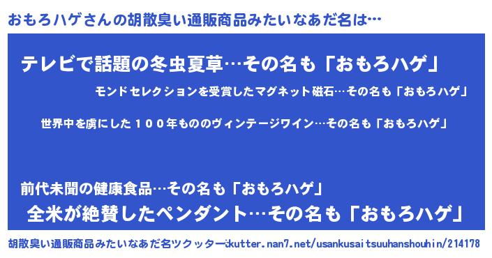 | 男性向けラノベタイトル風あだ名 | 『転生したらおもろハゲだった件』 |