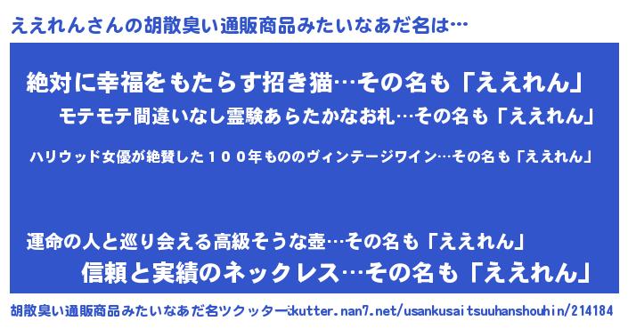 | ヘコむあだ名 | 『ええれん(笑)』『ええお』 |