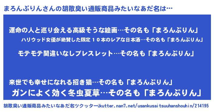 | 欧米人風あだ名 | 『マイケルまろんぷりん』 |