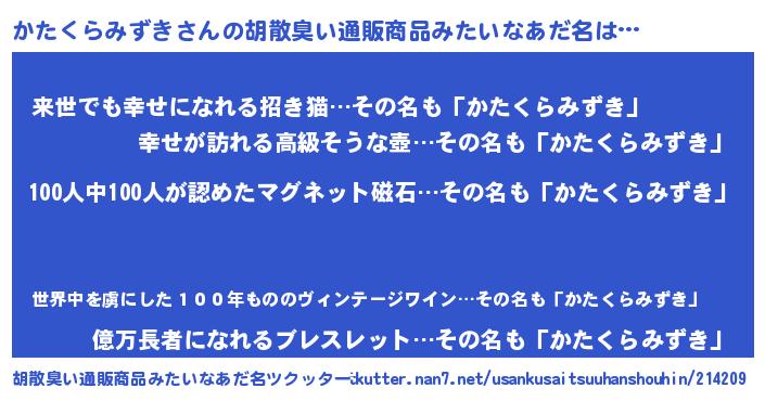 | ヘコむあだ名 | 『かたくらみずき(小並感)』『かたにー』 |