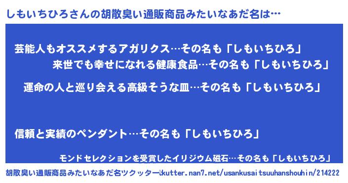 | 肩書あだ名 | 『しもいちひろ国家主席』 |