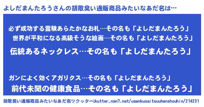 よしだまんたろうさんの胡散臭い通販商品みたいなあだ名をツクッター!