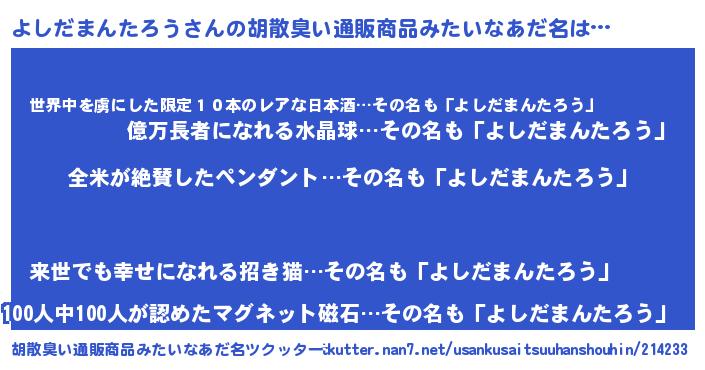 | 意味不明あだ名 | 『とにかく怪しいよしだまんたろう』 |