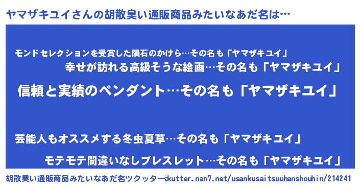 | ポケモン風あだ名 | 『ヒヤマザキユイ』『ヤックウザ』 |