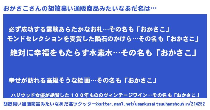 おかさこさんの胡散臭い通販商品みたいなあだ名をツクッター!