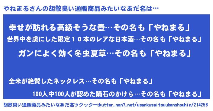 | 意味不明あだ名 | 『自称やねまる』『やねまるフォーエバー』 |