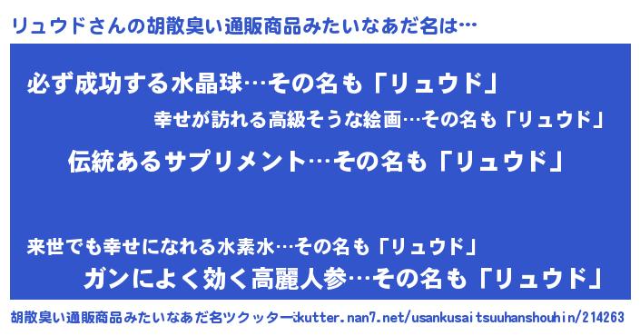 | 意味不明あだ名 | 『とにかく怪しいリュウド』 |