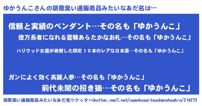 | 意味不明あだ名 | 『住所不定無職ゆかうんこ(43歳)』 |