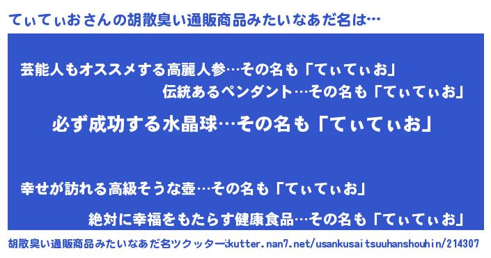 | ヘコむあだ名 | 『てぃにゅー』『てぃてぃお(震え声)』 |