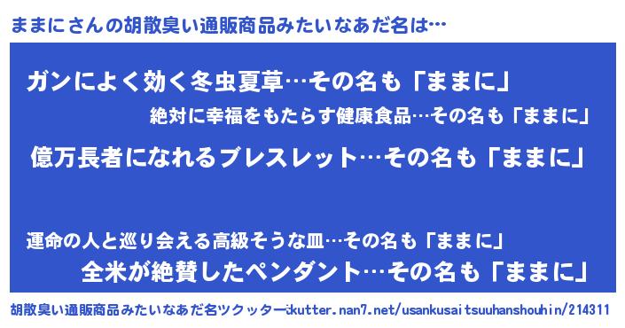 | 意味不明あだ名 | 『ペロリンままに』『自称ままに』 |