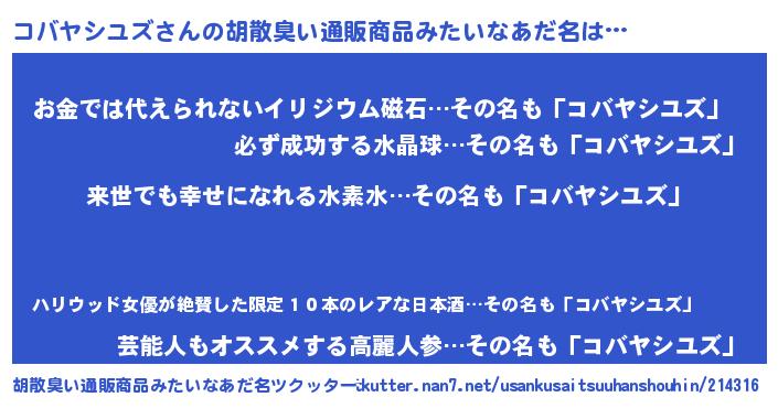 | ヘコむあだ名 | 『コバヤシユズ(苦笑)』『コバにゅー』 |