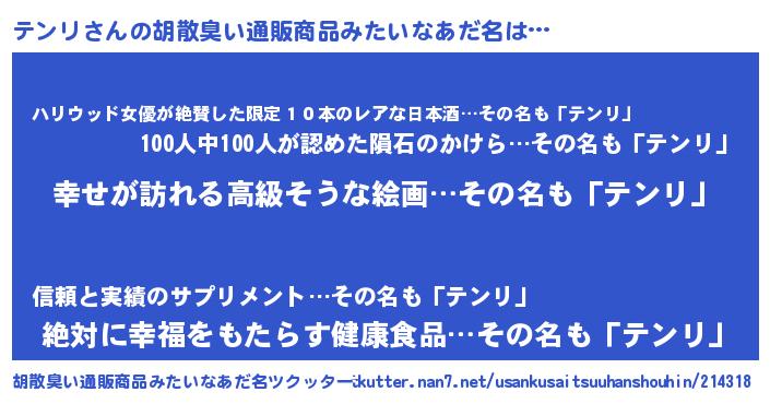 | 欧米人風あだ名 | 『テンリクリステル』『ダレノガレテンリ』 |