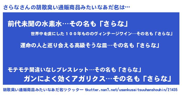 | 恥ずかしいあだ名 | 『さらっちょ』『さらちん』 |