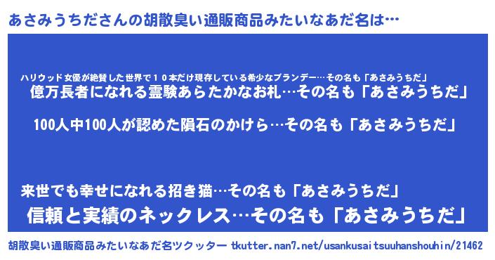 | 男性向けラノベタイトル風あだ名 | 『はたらくあさみうちださま!』 |