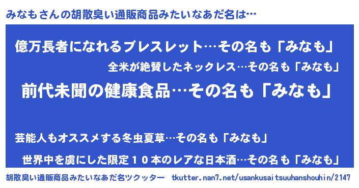 | 意味不明あだ名 | 『ヨモギ科みなも属』『永久保存みなも』 |