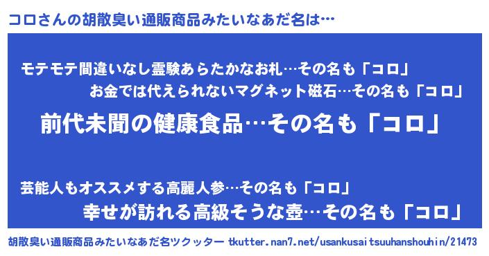 | ヘコむあだ名 | 『コロ(笑)』『コロにゅー』『つくし』 |