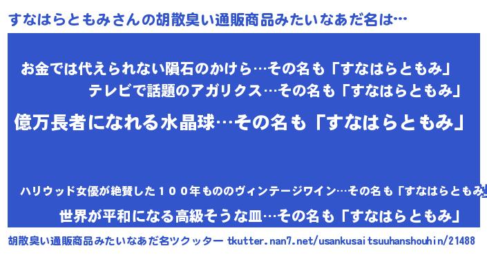| 肩書あだ名 | 『すなはらともみ少将』 |