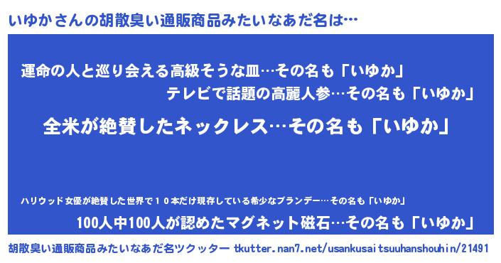| 意味不明あだ名 | 『とにかく怪しいいゆか』『自称いゆか』 |