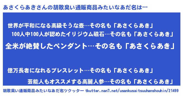 | 意味不明あだ名 | 『とにかく怪しいあさくらあき』 |