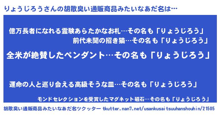 | 意味不明あだ名 | 『とにかく怪しいりょうじろう』 |