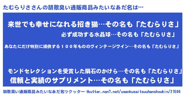 | 欧米人風あだ名 | 『ダレノガレたむらりさ』 |
