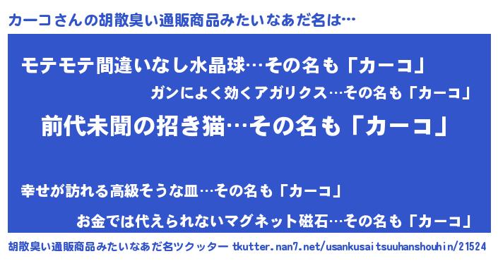| ヘコむあだ名 | 『カーコ(小並感)』『カーにゅー』 |