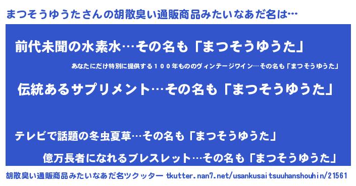 | ヘコむあだ名 | 『まつ太郎』『まつそうゆうた(遠い目)』 |
