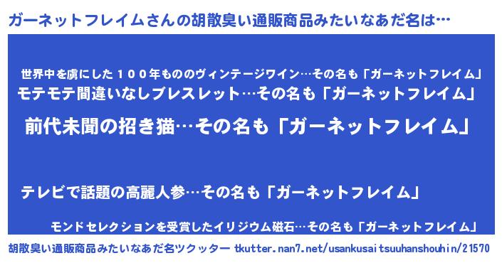 | ヘコむあだ名 | 『ガーネットフレイム(小並感)』『ガーにー』 |