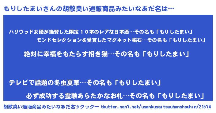 | 伝説のあだ名 | 『聞きしに勝る吟遊詩人もりしたまい』 |