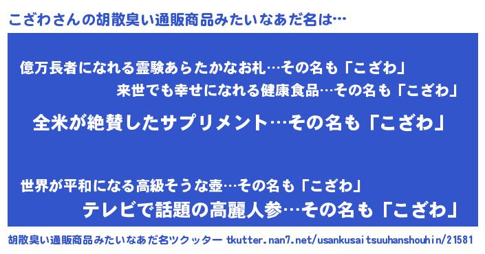 | 恥ずかしいあだ名 | 『コザリンリン』『プリティーこざわ』 |