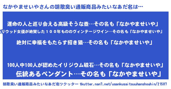 | 伝説のあだ名 | 『聞きしに勝る吟遊詩人なかやませいや』 |