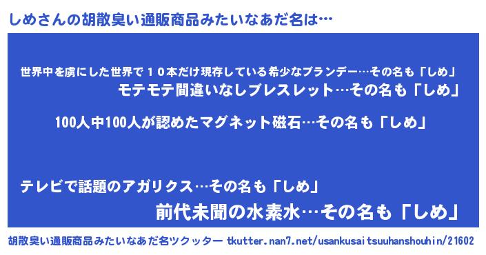 | ヒーロー風カッコイイあだ名 | 『正義の使者しめ』『仮面シメダー』 |